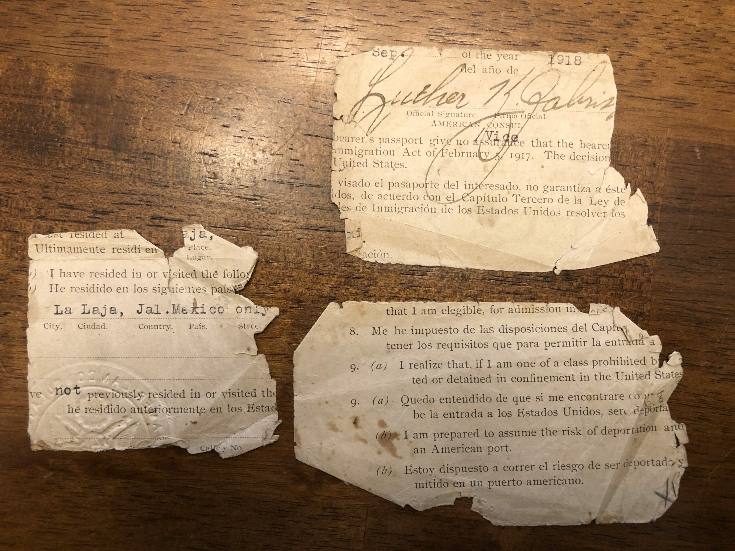 U.S. Embassy & Consulates in Mexico document giving young Gabriela Puentes passage into the country in 1918.