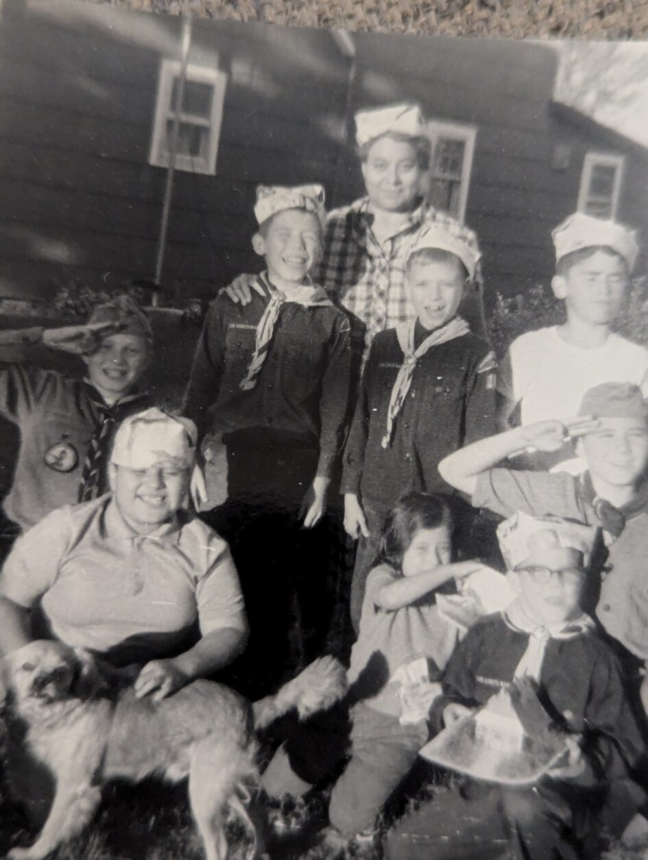 Tom Lianez with boy scout troop group. Antonia Lianez was the den mother.