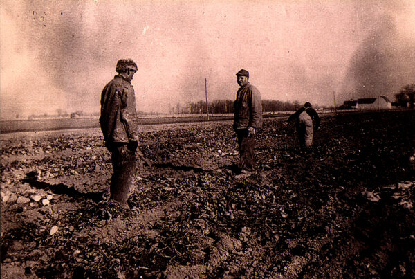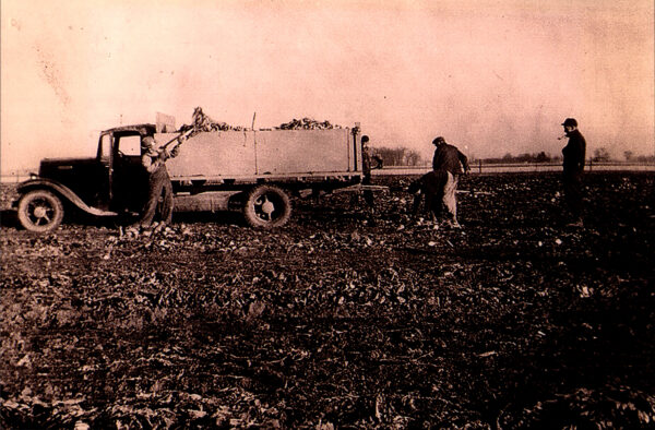 The man at the rear of the truck with the dark coat is Juan Vargas loading beats in Wren, Ohio circa 1940