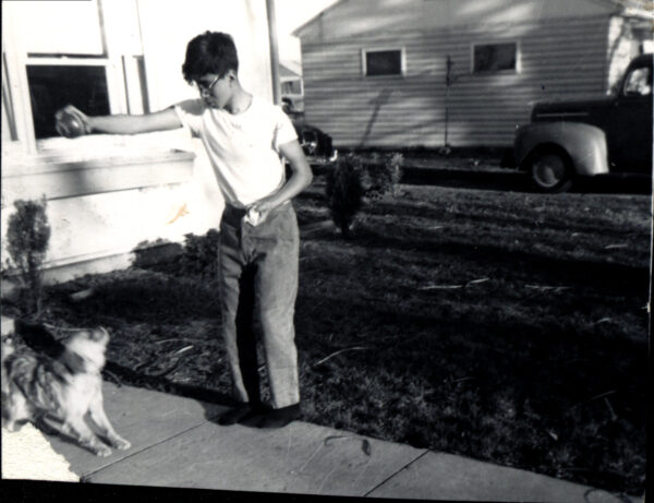 John Lianez and family dog “Dino” outside of the Vine Street Home in Van Wert, Ohio 1964
